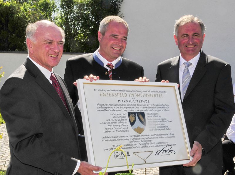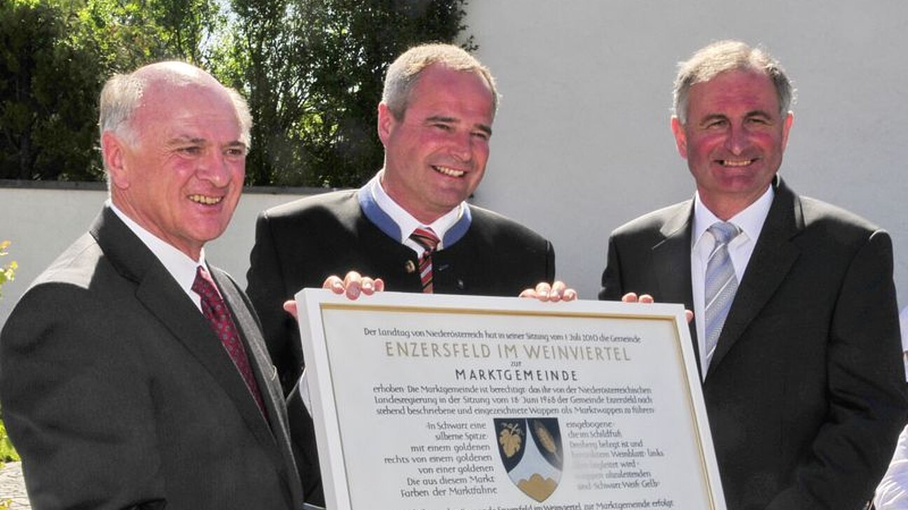 Der Landtag von Niederösterreich hat in seiner Sitzung vom 1. Juli 2010 die Gemeinde Enzersfeld im Weinviertel, in Würdigung der ständigen Verbesserung der kommunalen Einrichtungen in den letzten Jahrzehnten, einstimmig zur Marktgemeinde erhoben.